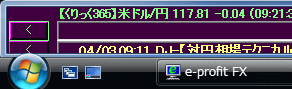Windows Vistaでティッカーを起動すると下のように表示が切れてしまう場合があります。 その場合Windowsのデザイン設定の変更が必要となります。 ![]() デスクトップ上で右クリックしメニューの「個人設定」を選択します。 ![]() 個人設定の画面の「ウィンドウの色とデザイン」を選択します。 ![]() ウィンドウの色とデザイン画面の「詳細な色のオプションを設定する、、、」 を選択します。 ![]() デザイン設定画面の「詳細設定」を選択します。 ![]() デザインの詳細で指定する部分を「ウィンドウの境界の間隔」を選択し サイズを「0」に設定しOKを押します。(残りのウィンドウもすべてOKで閉じます。) ![]() デザイン変更後ティッカーがすべて表示されるか確認してください。 ![]() |